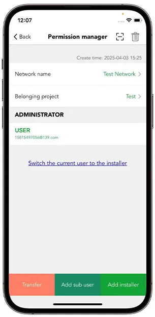 - Drei Benutzerrollen: Admin, Installateur, Sub-User.