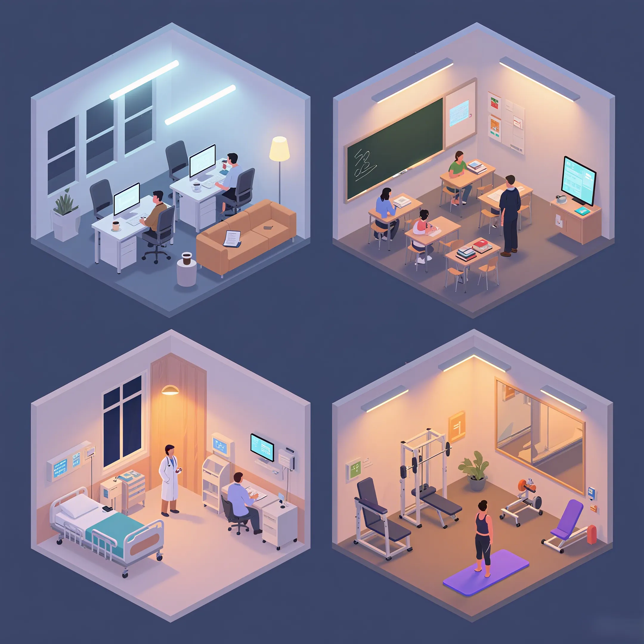 - In offices and classrooms, static light can cause eye strain and reduce alertness during long hours.