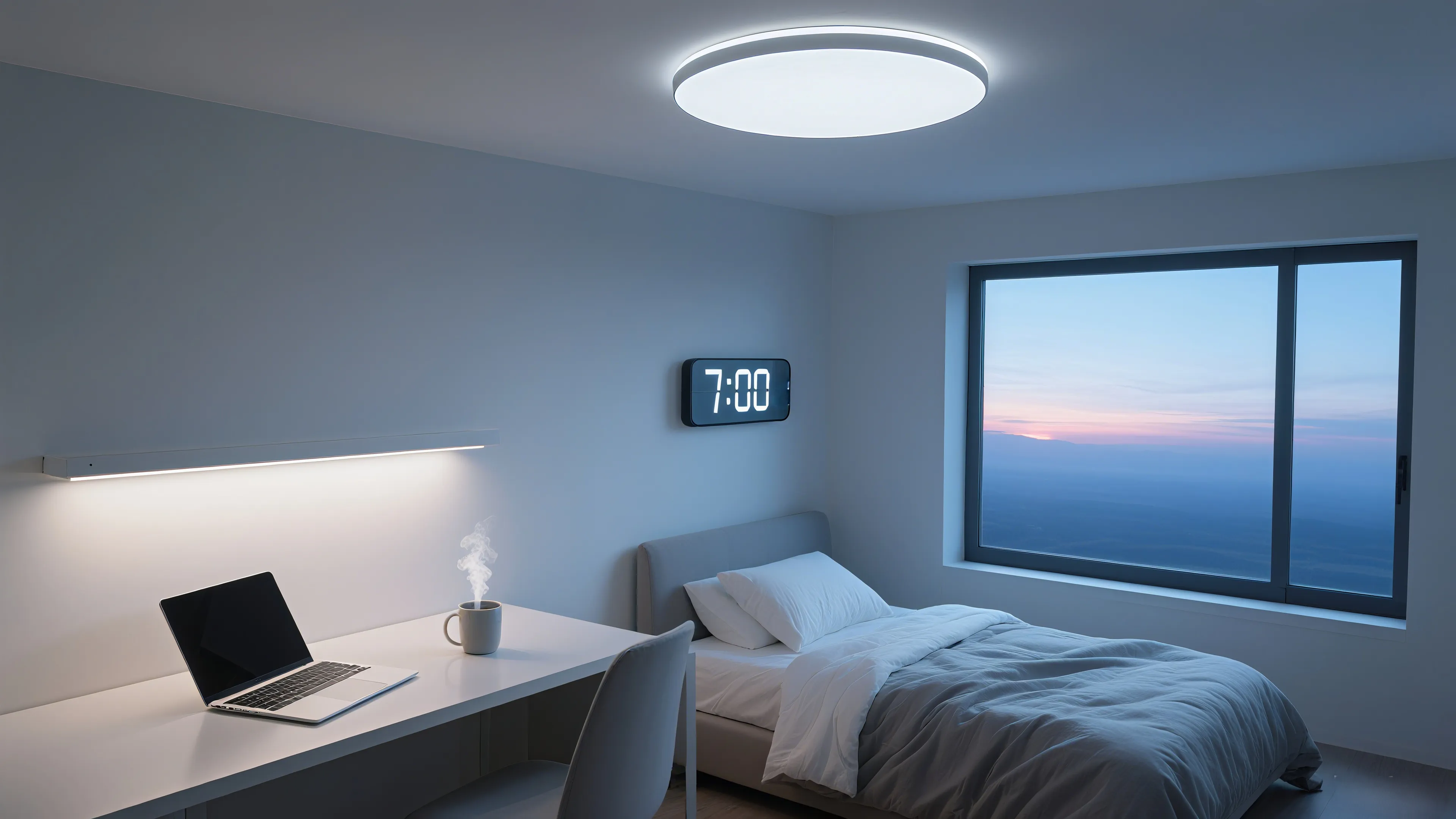 🌅 Morning (7:00 AM) – Cool, energizing white light