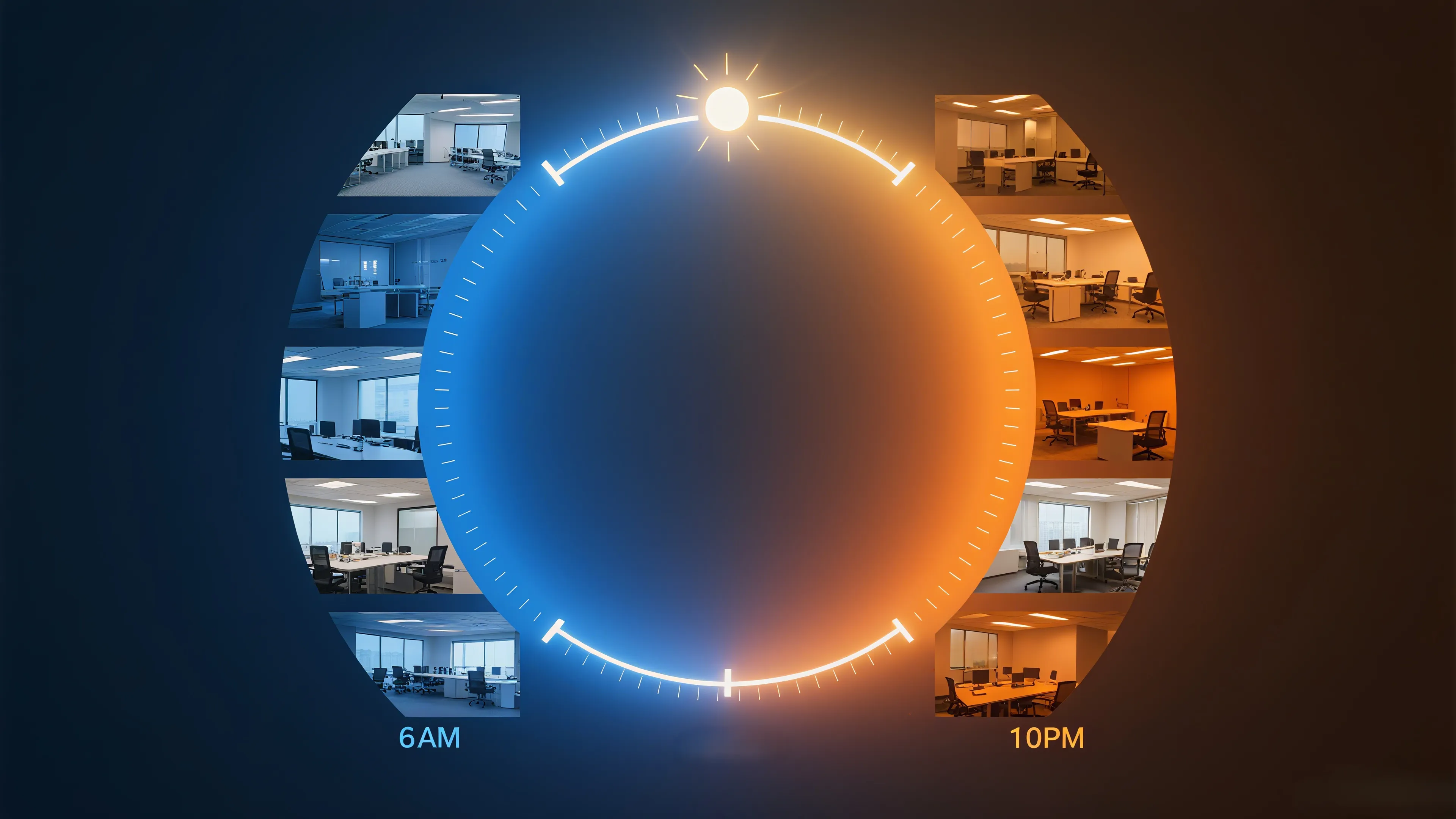 ⏰ Dynamic Scheduling – Automatically shifts from cool, energizing light in the morning to warm, calming tones at night.