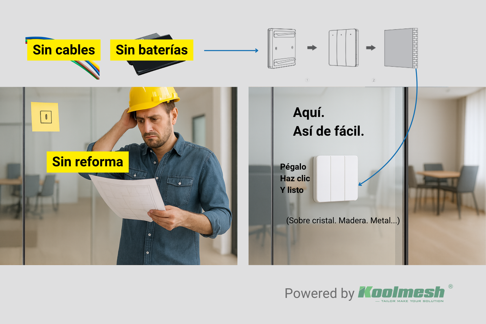 Este interruptor cinético inalámbrico es ideal para reformas y espacios sin cableado, ofreciendo una solución sin obra ni mantenimiento.