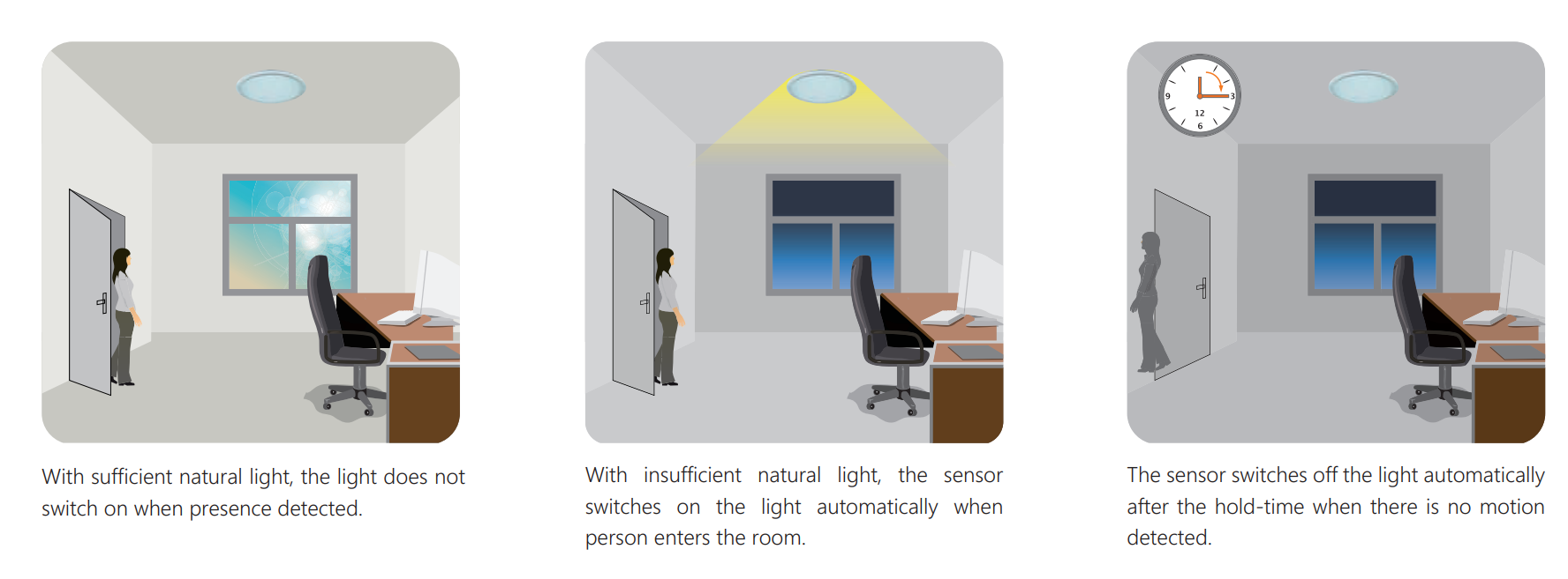 - 🏢 Office corridors and hallways: Lights turn on only when someone passes through, and stay off during daylight hours near windows.