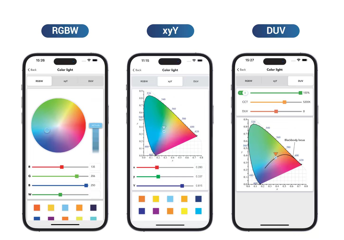 🧪 Consistency Tools – Per-device trim, channel balance, and batch apply help align luminaires; optional Duv guardrails minimize off-locus drift.